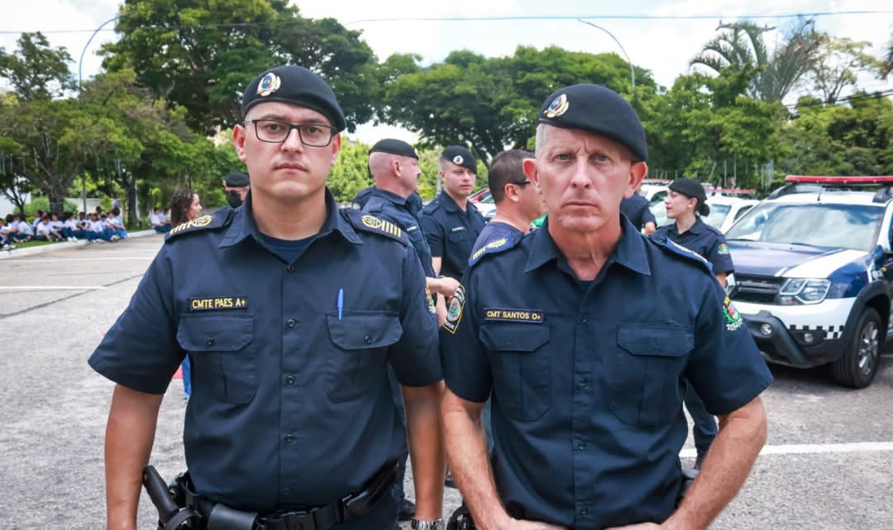 GCM Santos entrega o cargo ao GCM Paes, que assume como novo comandante da...