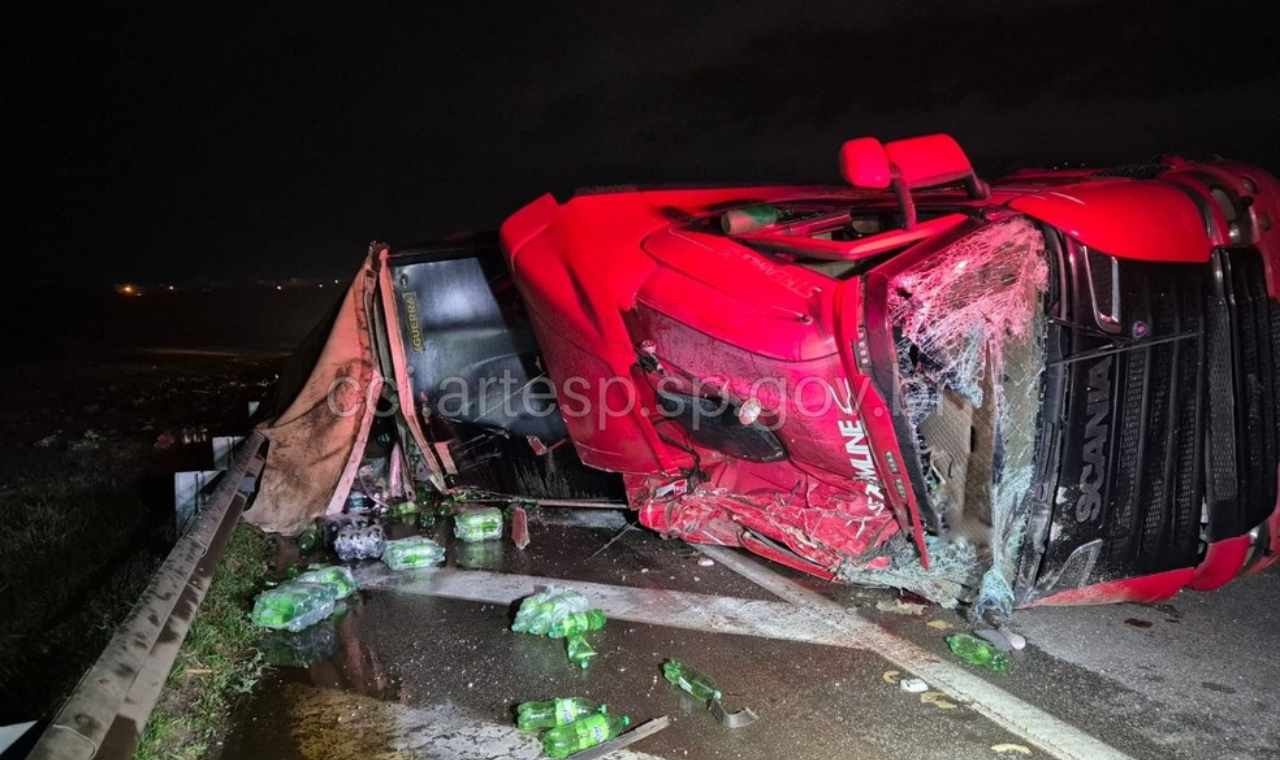 "Caminhão de Refrigerantes Tomba e Interdita Rodovia em Sorocaba"